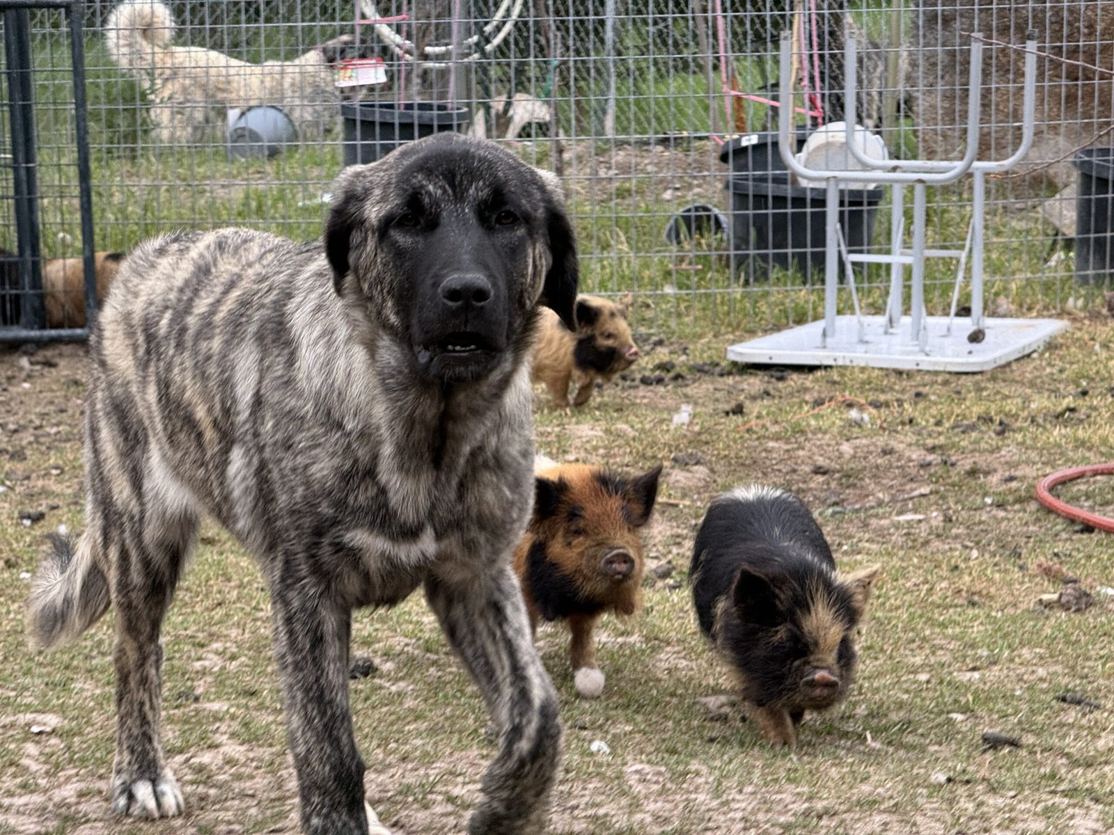 ” This Anatolian Shepherd has been such a blessing, watching him do what he was naturally meant to do. He guards his animals, children, and home from mountain lions, bear, javelina, and coyotes. We live in a heavy predator area and he takes his job seriously. He loves his people and his farm animals fiercely.”