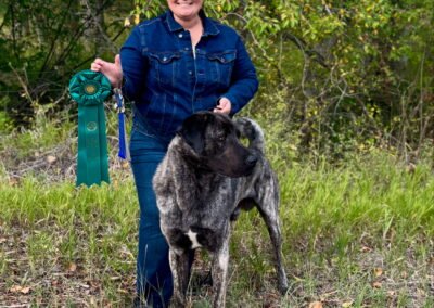 Hercules is barely an adult, but he has shown us many positive qualities in his relatively short life. Herc has completed his health screening through OFA, and earned his Bred-by-Exhibitor Champion title in 2025. He works full time on the farm, and we look forward to meeting his pups someday soon!