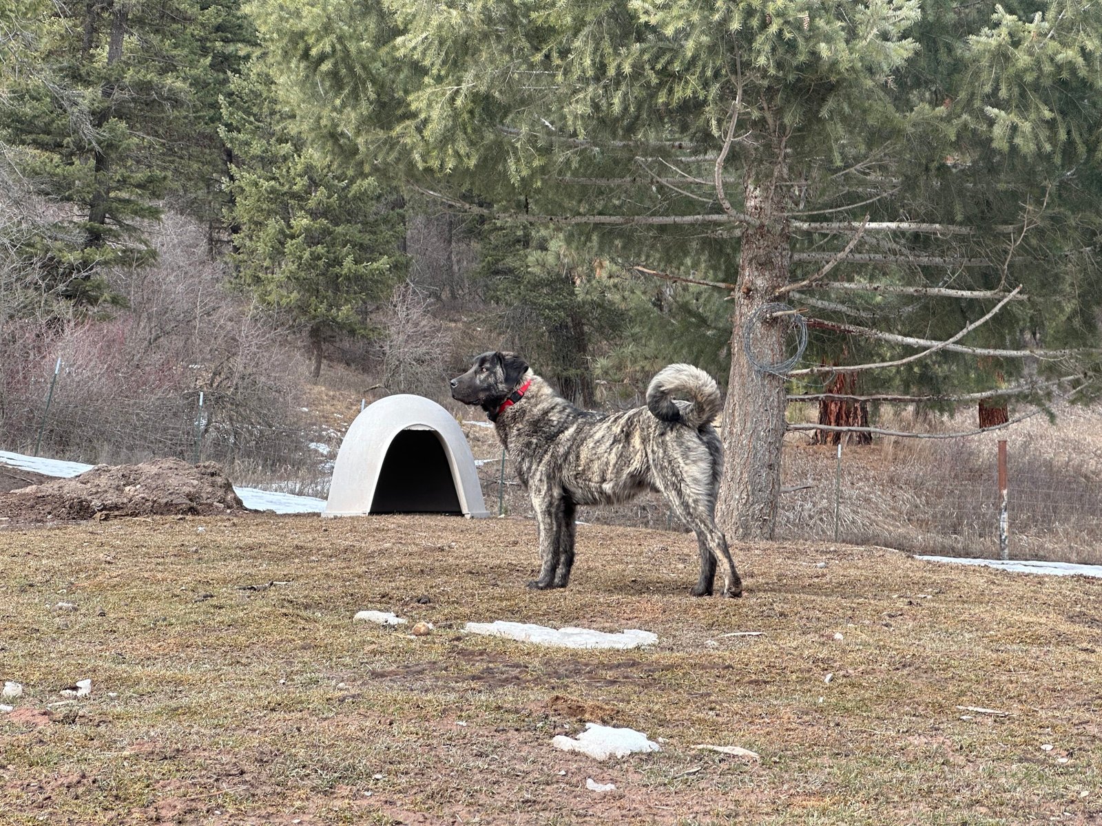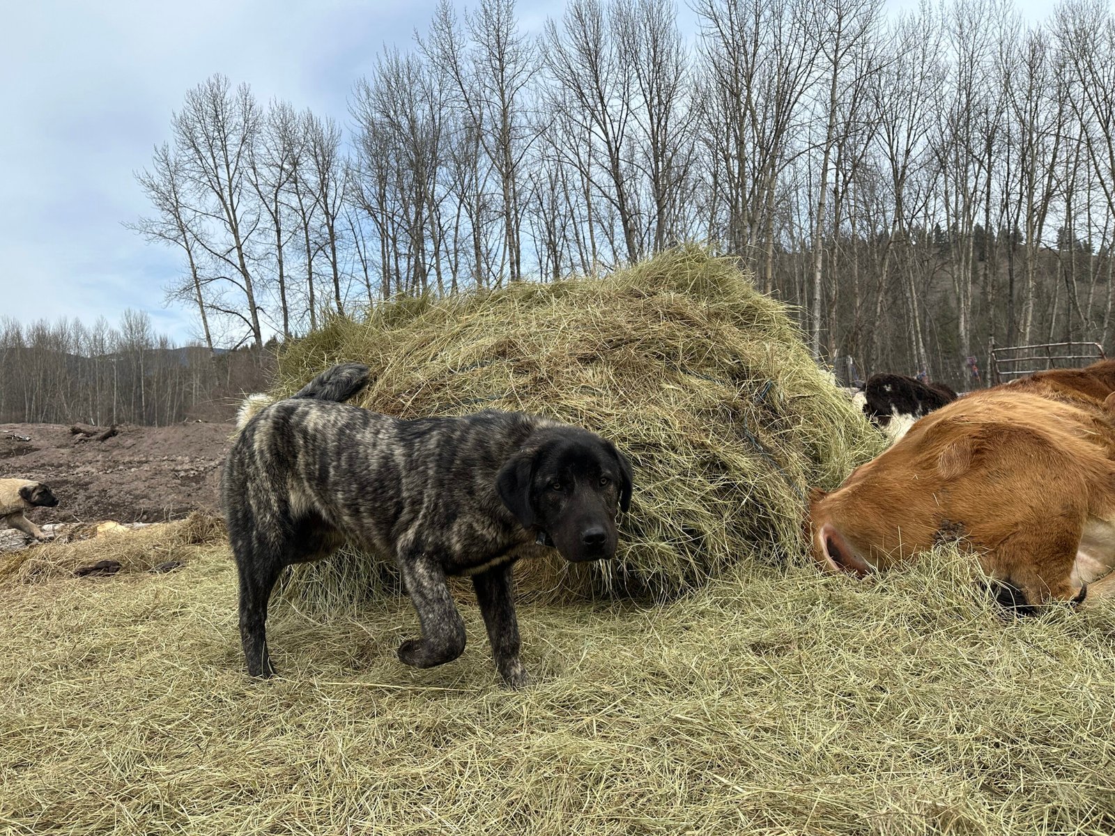 Hercules is assertive with the other dogs, in work and play. He remains submissive with our livestock, which is great to build trust and foster their bond. He is a solid working dog and adaptable in off-property settings.